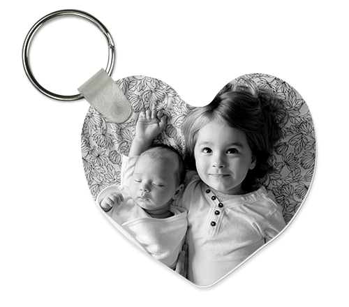 Sie erhalten einen bedruckten Anhänger in Herzform mit Ihrem Wunschfoto, Größe ca. 63x57mm.